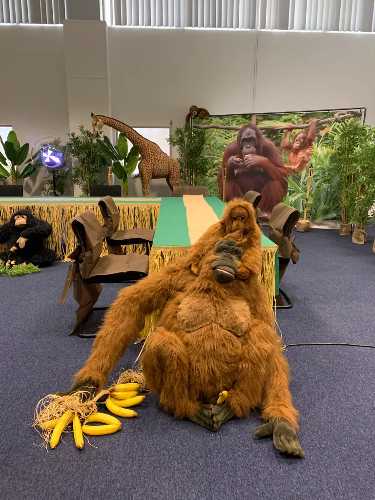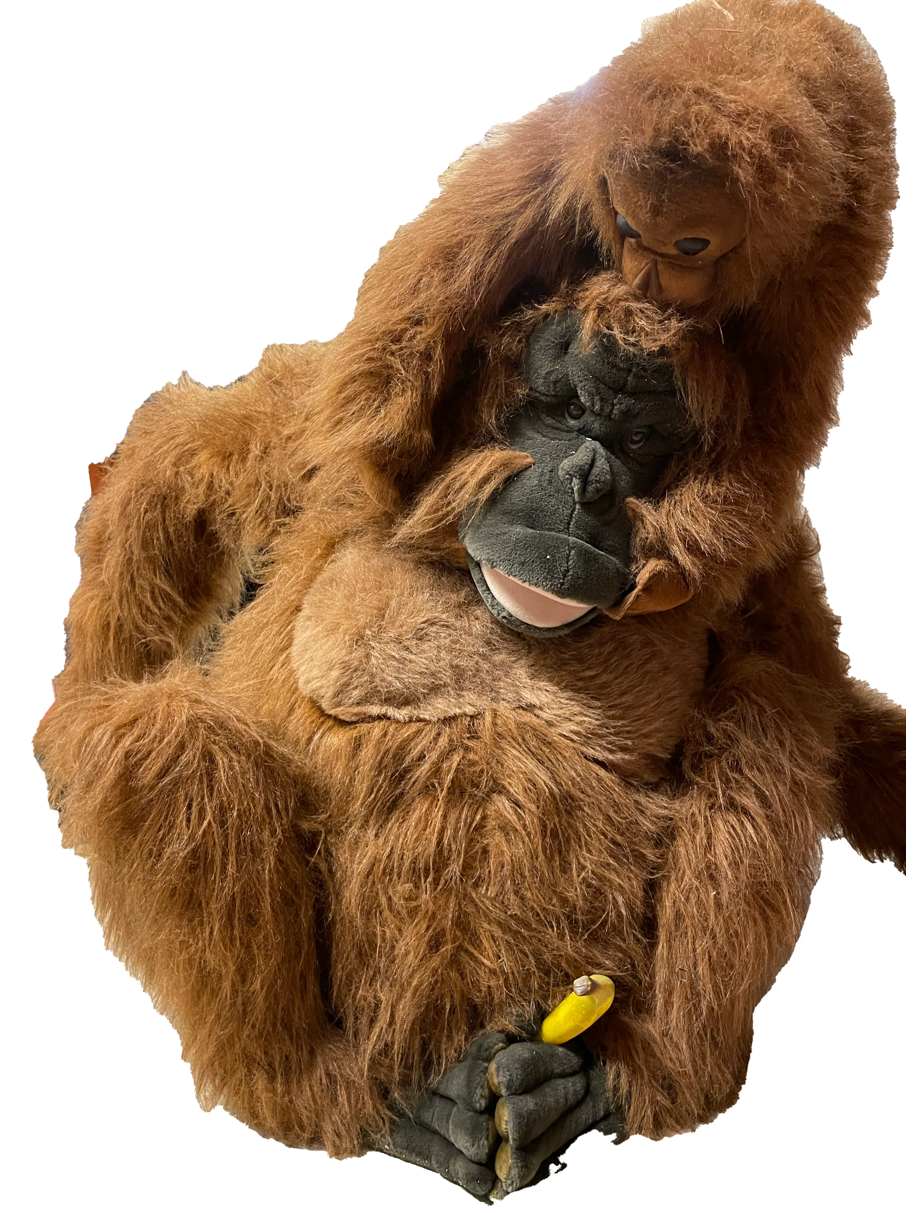Gros singe marron avec bb sur la tete