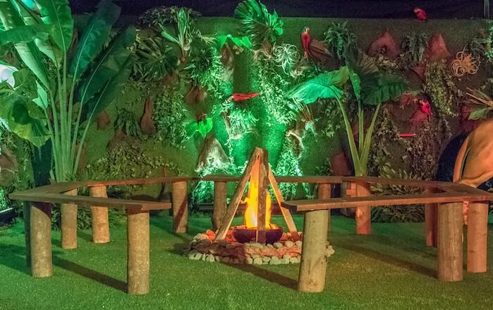 feu factices avec bancs en bois